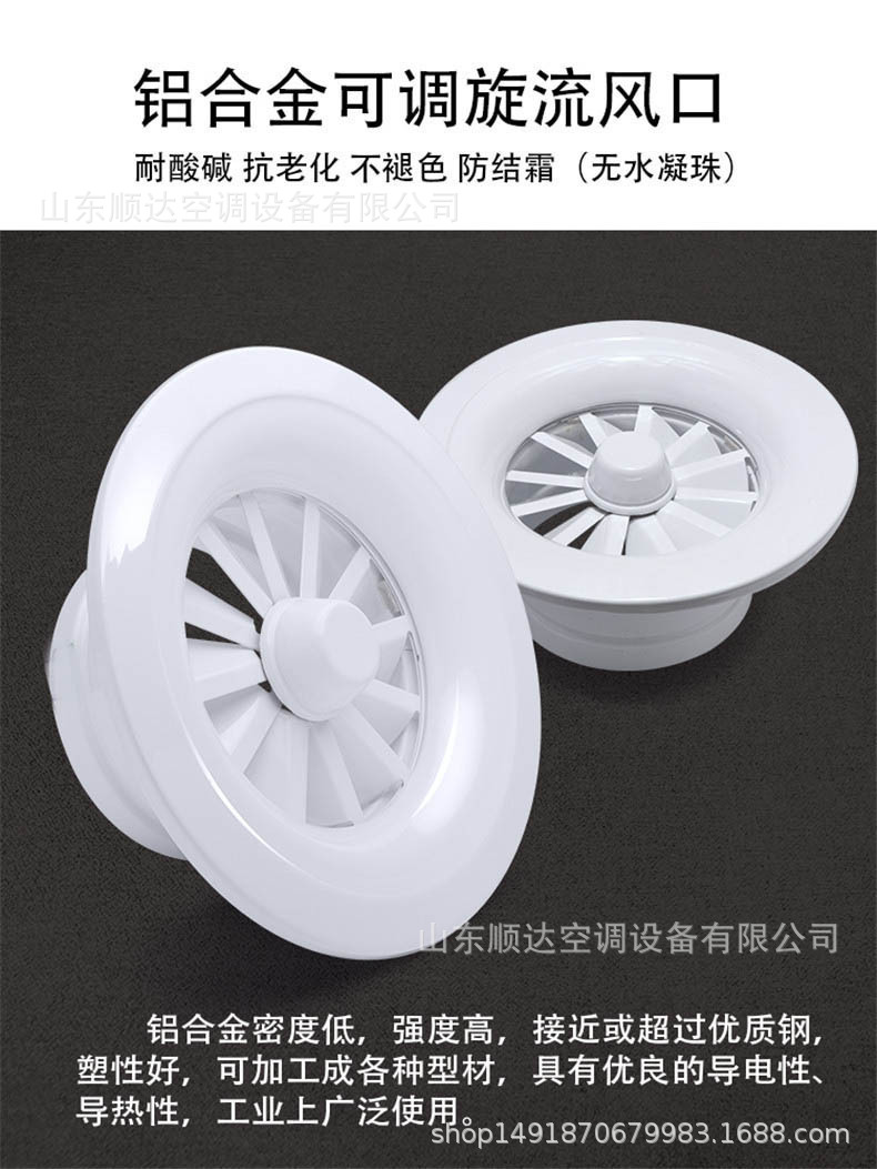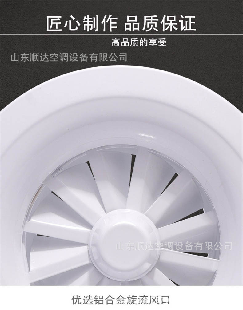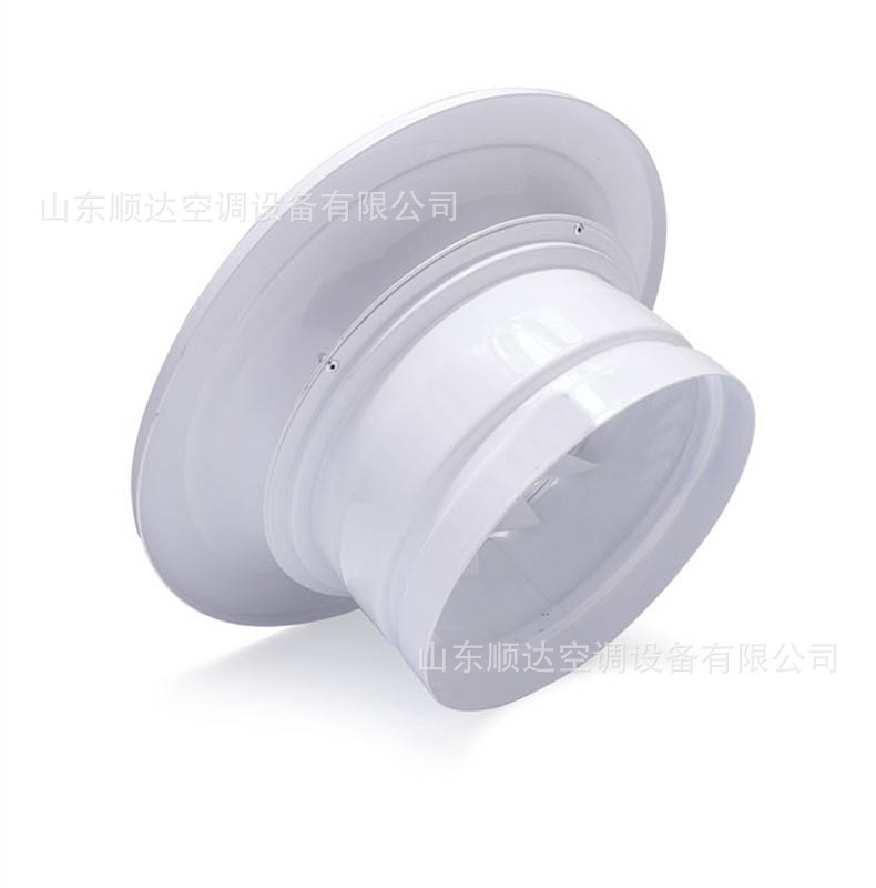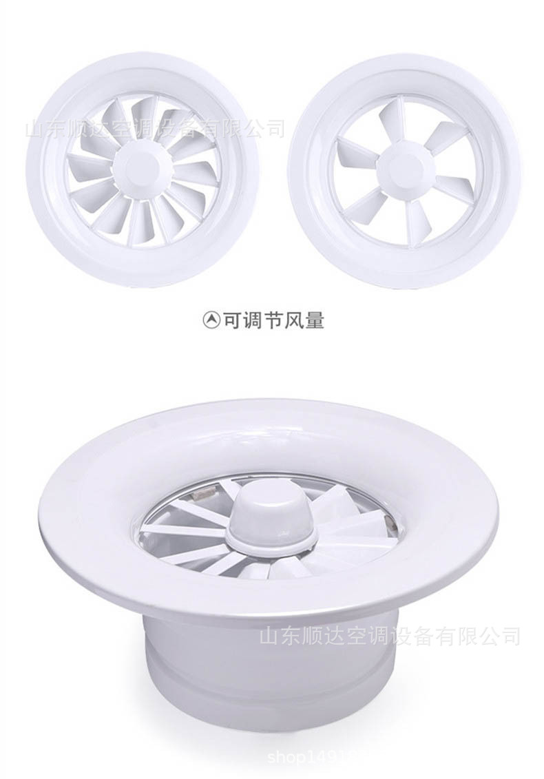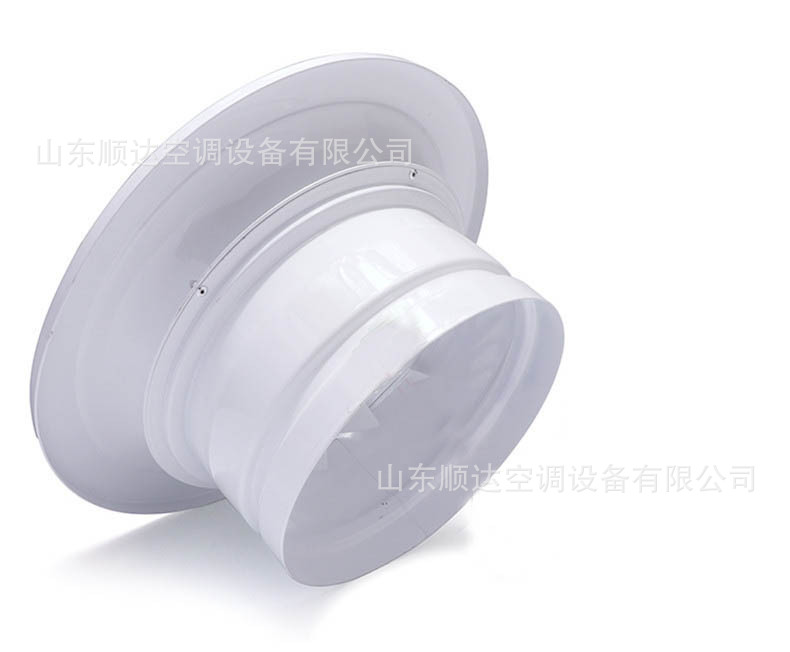 旋流風(fēng)口是空調(diào)系統(tǒng)中的一個排風(fēng)工具。在空調(diào)通風(fēng)系統(tǒng)中可用作大風(fēng)量,大溫差送風(fēng)以減少風(fēng)口數(shù)量,安裝在天花板或頂棚上,可用于3米以內(nèi)低空間,也可用二種高度大面積送風(fēng),高度甚至可達10米以上。