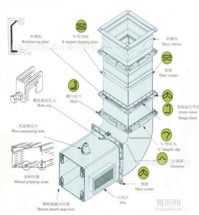 產品多用于大型商場,寫字樓,地鐵站,大型超市,現(xiàn)代化工廠的消防排煙送風,空調通風,排塵通風等。本公司生產工藝先進,產品質量優(yōu)良。產品成品表面平直,外形標準美觀,為施工現(xiàn)場安裝方便、快捷打下了良好的基矗共板式法蘭風管又稱無法蘭風管,其制作形式比傳統(tǒng)的矩形風管加工速度更快捷、更方便、更小的漏風率。