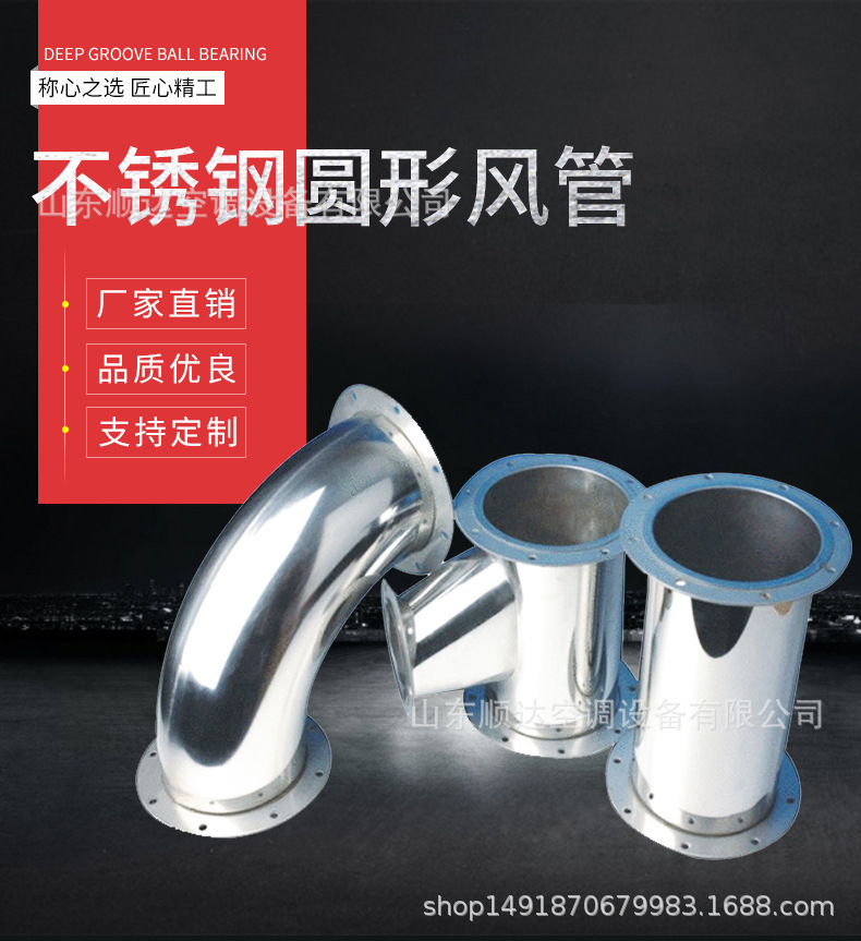 不銹鋼風管,不銹鋼風管可分為圓形和矩形兩種。可根據工程現場的不同要求,生產各種形狀、各種規格型號及板材的成品風管。不銹鋼風管主要材質有:SUS304、316、303、310、310S、301、302、304L、316L 、321、201、202、902、904、317、430等。不銹鋼風管表面性質主要有8K鏡面板、彩色不銹鋼板、不銹鋼磨砂板、不銹鋼拉絲板、不銹鋼花紋板、不銹鋼蝕刻板、鈦金、雪花砂、2B板、BA板和工業 [1] 中厚板。不銹鋼風管成品因其優異的耐蝕性、耐熱性、高強度等物化性能,主要應用于多種氣密性要求較高的工藝排氣系統、溶劑排氣系統、有機排氣系統、廢氣排氣系統及普通排氣系統室外部分、濕熱排氣系統、排煙除塵系統等。