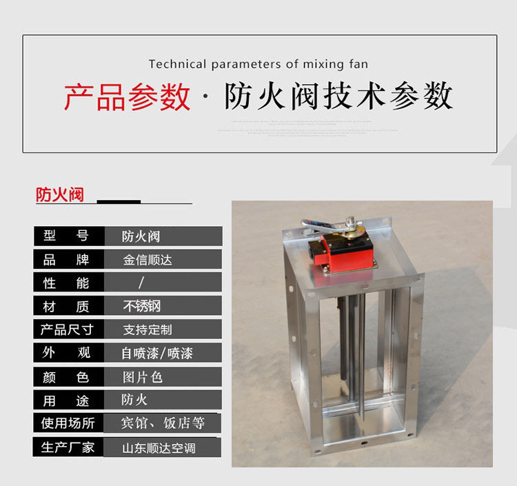 排煙防火閥是一種消防部件,一般安裝在機械排煙系統的管道上,平時呈開啟狀態,發生火災時開啟排煙,當排煙管道內煙氣溫度達到280度時關閉,并在一定時間內滿足漏煙量和耐火完整性要求,起隔煙阻火作用。主要材質:碳素鋼、鍍鋅板、不銹鋼。 ■材質:不銹鋼,鋼板,鋁合金 ■規格尺寸:支持定制,配合設計尺寸